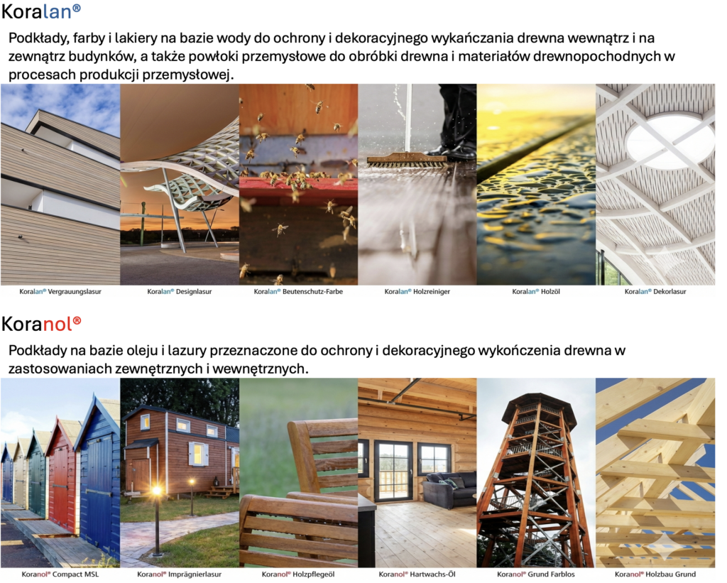 Proponujemy również m.in. impregnaty lazurujące do drewna. To specjalistyczna chemia łącząca właściwości ochronne z efektem dekoracyjnym, znakomicie uwypuklająca usłojenie surowca. Chroni go m.in. przed wilgocią, promieniowaniem UV oraz szkodnikami. Preparaty te dostępne są w wersji transparentnej, jak i kolorystycznej. W zależności od typu mogą nadać powierzchni wykończenie matowe, półmatowe lub błyszczące. Ponadto dostarczamy impregnat do drewna konstrukcyjnego. Dzięki niemu nie tylko chroni się elementy konstrukcji przed niszczeniem, ale i ogranicza jego naturalną „pracę” pod wpływem zmian wilgotności.